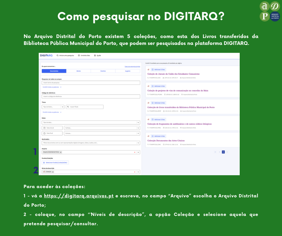 Todas as instituições que pretendam visitas ao Arquivo Distrital do Porto deverão preencher este formulário e enviá-lo com pelo menos 15 dias de antecedência.
