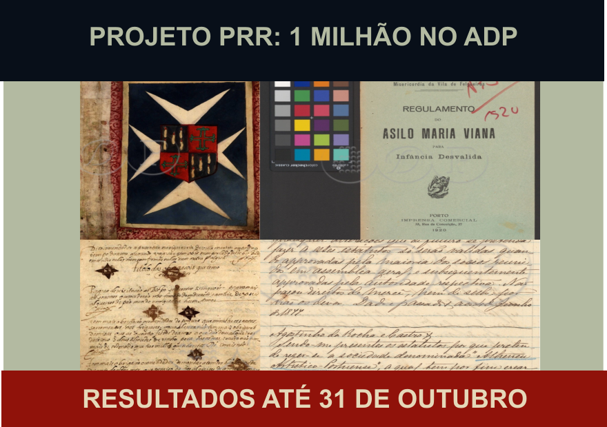 Ainda, durante o mês de outubro, foram disponibilizadas 24 unidades de arquivo, provenientes de fundos monásticos, designadamente da Comenda de Águas Santas (PT/ADPRT/MON/CSMASMAI), do Convento de Santo Agostinho da Serra, em Vila Nova de Gaia (PT/ADPRT/MON/CVSASVNG), e do Convento de São Domingos do Porto (PT/ADPRT/MON/CVSDPRT).